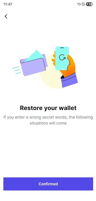 Secret words are required to restore your wallet. If you lose your secret words, you won't be able to restore your wallet.
